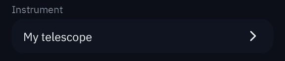 (in der oberen rechten Ecke) auf einer der Hauptseiten der App (Homepage, Katalog, Wissenschaft oder Galerie), um das Einstellungsmenü aufzurufen. Wählen Sie dann "Mein Teleskop", um auf Ihre Teleskopeinstellungen zuzugreifen.