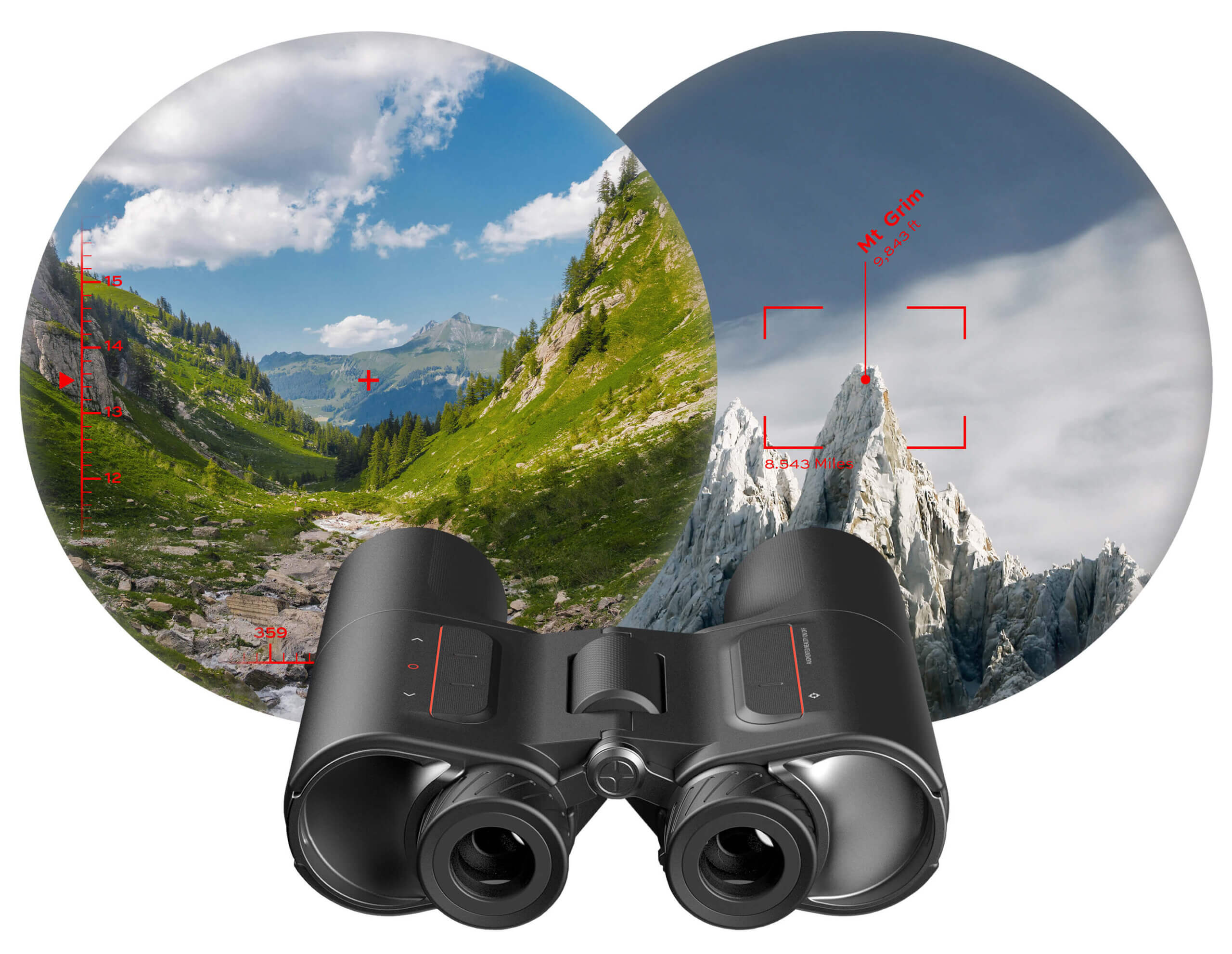 Ihr präzises Augmented-Reality-Orientierungssystem blendet dynamisch kontextbezogene Informationen in Ihr natürliches optisches Sichtfeld ein und bereichert so Ihre Live-Beobachtung.