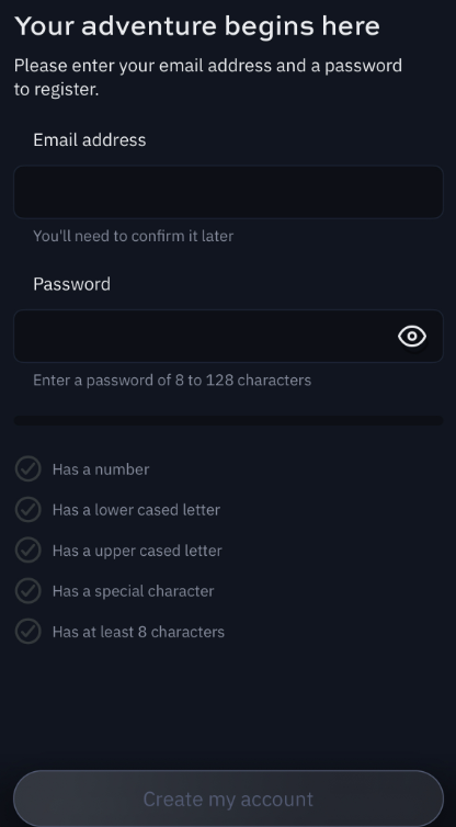 Tap on “Create an Account” then “Create my account”: