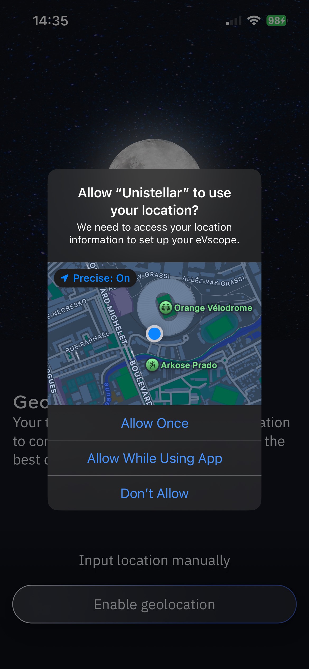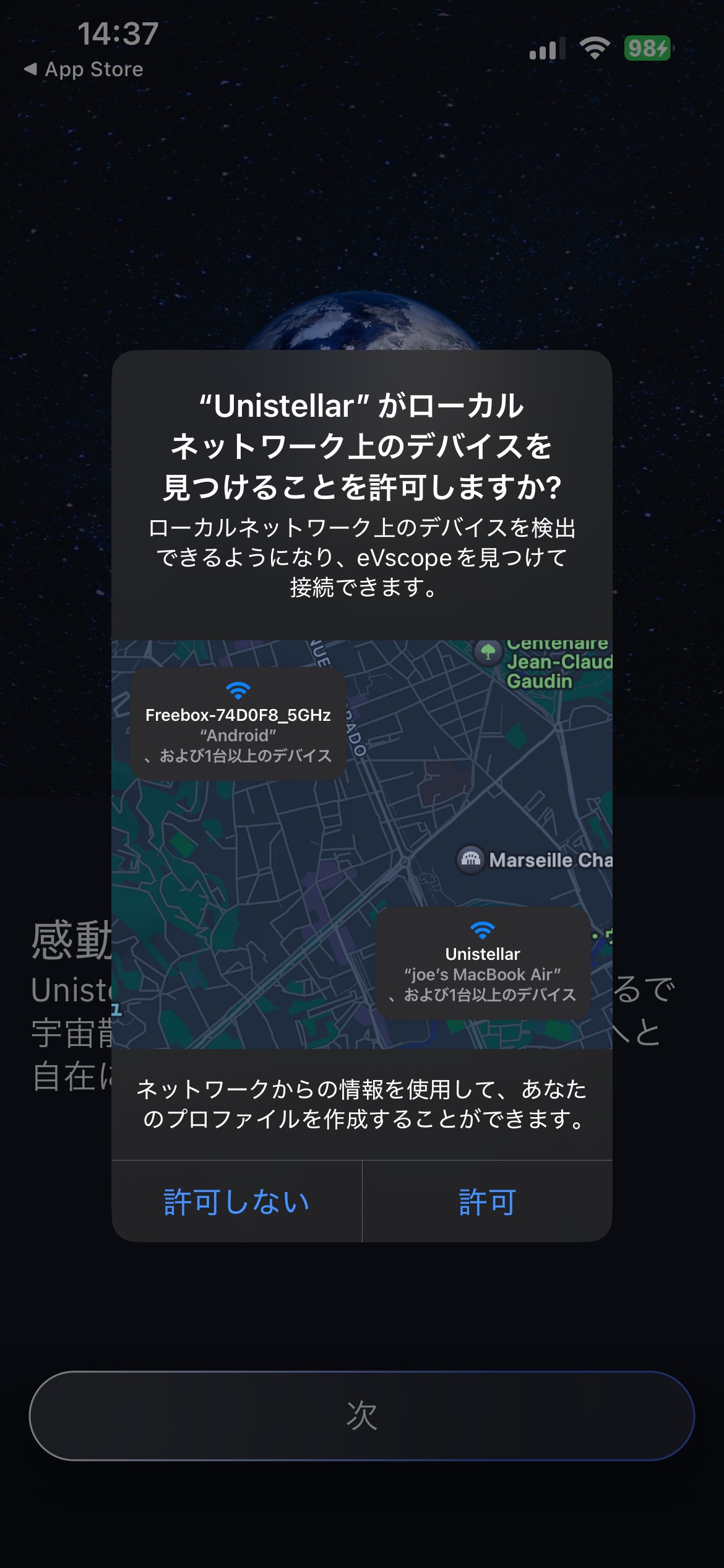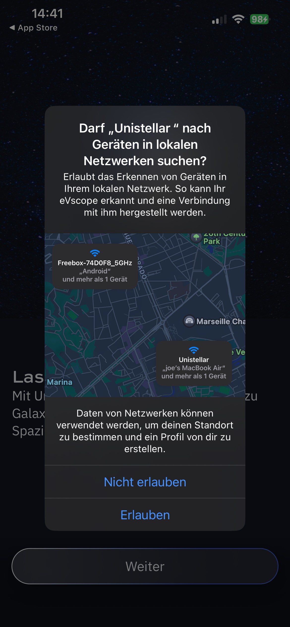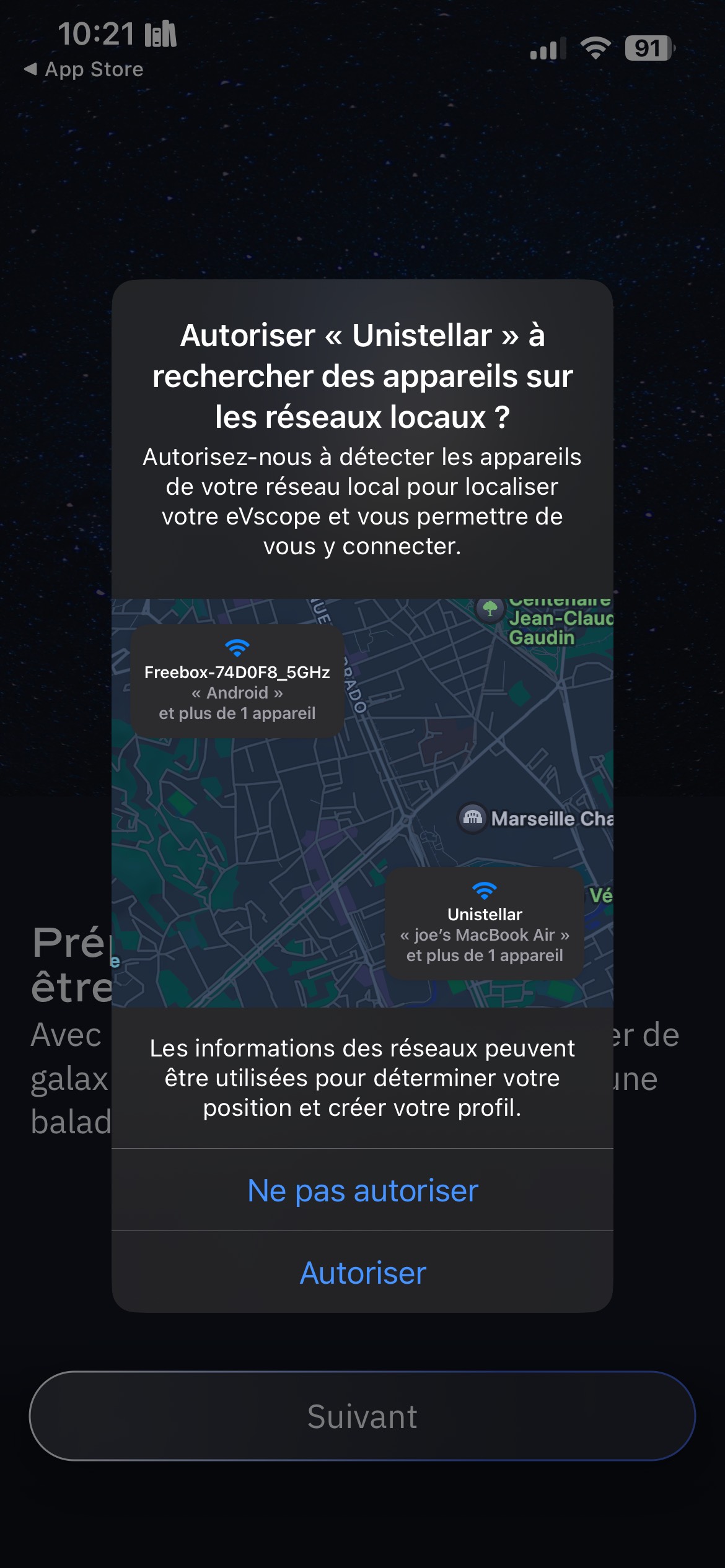 – When you see “UNISTELLAR would like to find and connect to devices on your local network,” tap OK