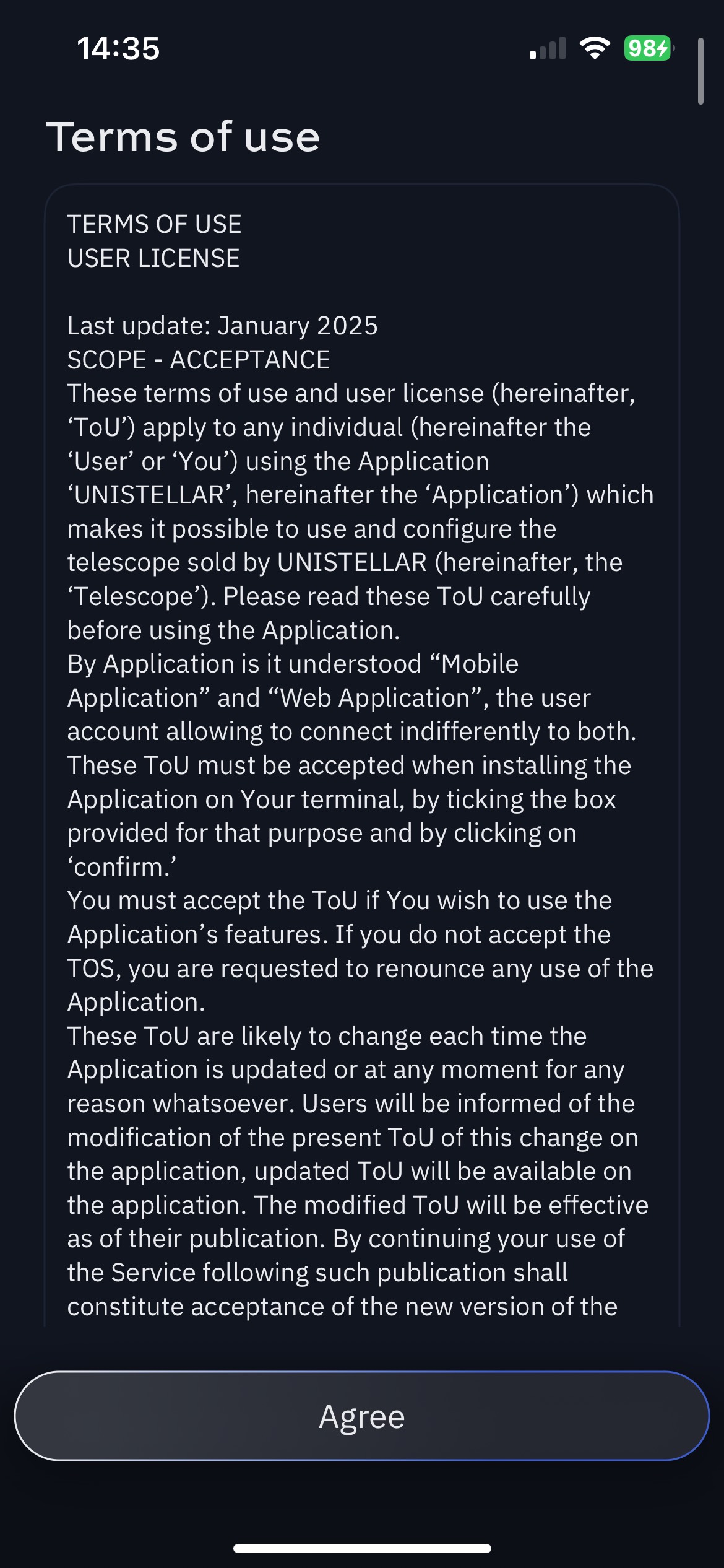 Following this sequence ensures smooth control of your Unistellar telescope and full access to all features.