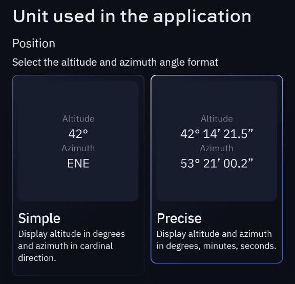 Sélectionnez le format d'unité que vous souhaitez voir apparaître dans le catalogue de l'application pour la position de l'objet, soit Simple, soit Précise.