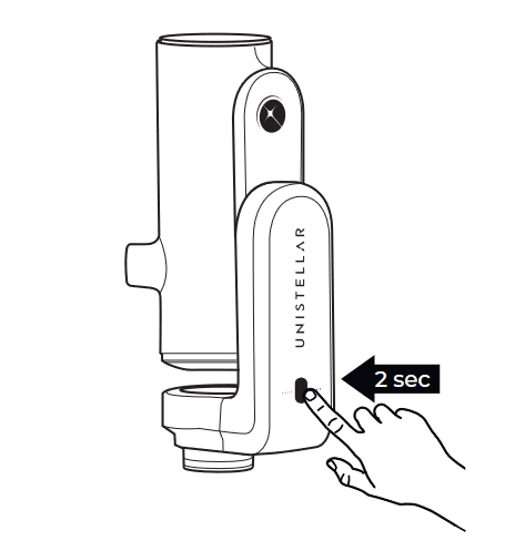 ODYSSEY または ODYSSEY PRO の電源ボタンを 2 秒間押して起動します。LED は最初に紫色に、その後青(または望遠鏡の設定によっては赤)になります。チューブと接眼部(ODYSSEY PRO のみ)のキャップを外します。