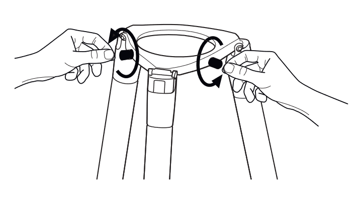 ODYSSEY または ODYSSEY PRO を垂直に三脚に取り付けます。三脚の上部のネジを締めて、ODYSSEY または ODYSSEY PRO をしっかり固定します。