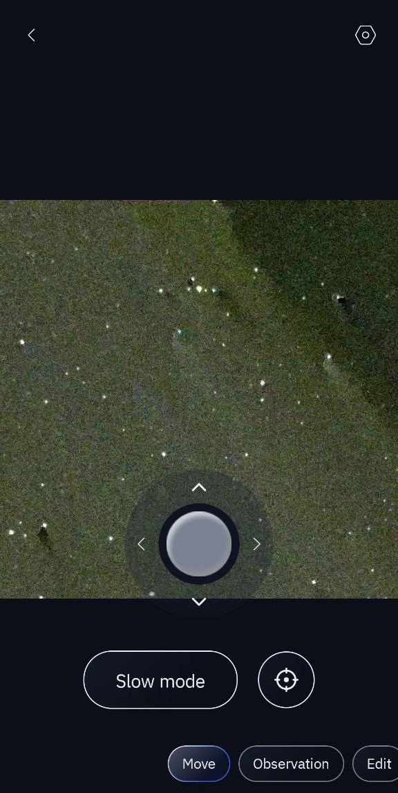 望遠鏡は、アプリ内のジョイスティックを使って手動で動かすことができます。たとえば、星が見える夜空の特定の部分を狙って、位置合わせを開始することができます。