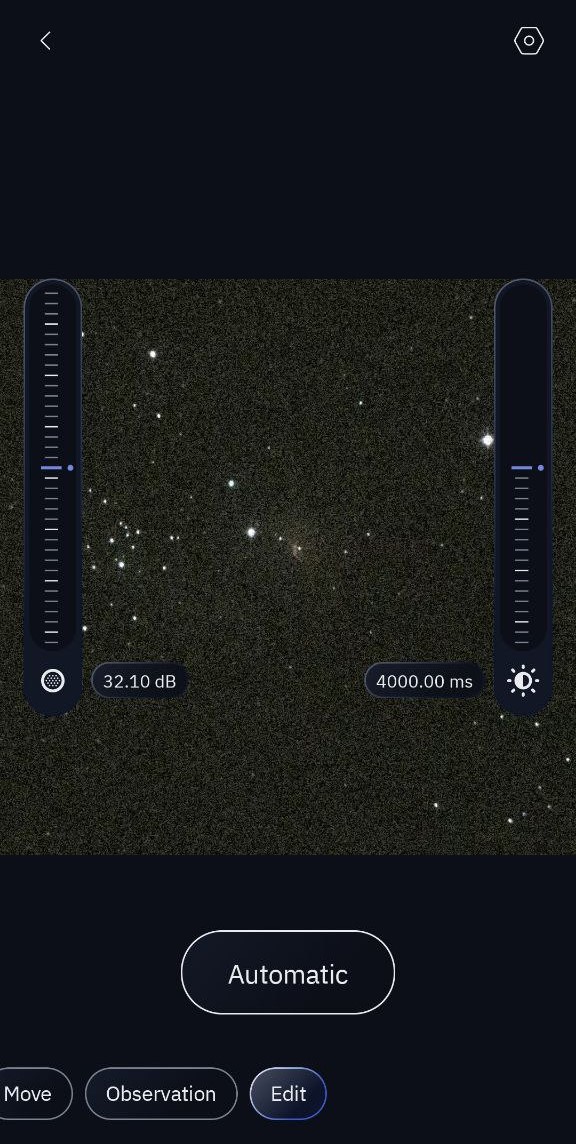 注:「惑星と月」モードでは、ゲインと露出時間を設定できます。ただし、Dynamic Signal Amplificationモード(Enhanced Vision)では、これらのオブジェクトの編集はできません。編集モードは太陽には利用できません(ゲインはすでに最小値に調整されています)。編集モードは太陽には利用できません(ゲインはすでに最小値に調整されています)。